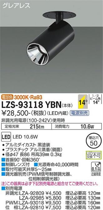 非調光:LZA-92809(100V専用) LZA-92985(100~242V)