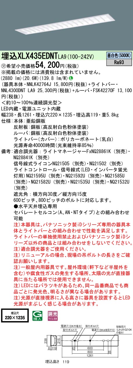 ◆注)本器具は、パナソニック製iDシリーズ専用の器具本体とライトバーとの組み合わせで性能を満足します。ライトバーの単独使用禁止およびパナソニック製iDシリーズ以外の商品とは組み合わせをしないでください。