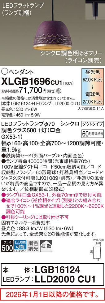 ◆適合ライコン(逆位相タイプ)(別売)との組み合わせで100%~1%調光と連動した2200K~6200K調色可能