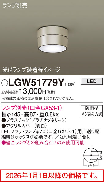 [機能/他] ランプ別売(口金GX53-1)光源◆LEDフラットランプφ70(口金GX53-1)用◆送り配線時はボックスが必要です。◆送り用端子台付寸法・質量◆幅:φ145 mm◆高:87 mm◆質量:0.8 kg仕様・注意事項◆電圧:100 V◆【プラスチック】プラチナメタリック◆【アクリルカバー】乳白◆天井直付型◆LEDフラットランプφ70(口金GX53-1)用◆送り配線時はボックスが必要です。◆送り用端子台付◆適合ランプとの組み合わせのみ使用可能
