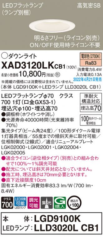 ◆天井埋込型、埋込穴φ100、浅型7H・高気密SB形・ビーム角24度・集光タイプ