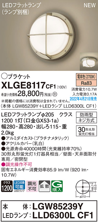 [機能/他] ランプ別梱包光源◆LEDフラットランプφ205 クラス1200 1灯(口金GX53-1a)◆色温度:2700 K◆光源寿命40000時間(光束維持率70%)寸法・質量◆幅:280 mm◆高:280 mm◆出しろ:115 mm◆質量:2 kg仕様・注意事項◆器具光束:920 lm◆電圧:100 V◆消費電力:10.7 W◆消費効率:85.9 lm/W◆デザイン分類:Stylish Moder◆【アルミダイカスト】プラチナメタリック◆【アクリルカバー】乳白◆天井直付型・壁直付型、拡散タイプ・密閉型◆Ra83◆30形丸形蛍光灯1灯器具相当◆壁面・天井面取付専用◆密閉型◆入力電流(100V時):0.17 A◆調光操作不可