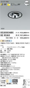 [機能/他] LED枠:アルミダイカスト・ブラック塗装パネル:ガラス・透明消しコーン:アルミ・鏡面LED(電球色)重量:0.5kg電源ユニット:別売●消費電力:24.9WLEDランプ●色温度:2700K●演色性:Ra92●定格光束:1250 lm●固有エネルギー消費効率:50.2 lm/W●光源寿命:40,000時間●別売専用電源ユニット〔非調光タイプ:XE92184E〕●取付可能天井厚5~25mm●軒下対応可能●調光器併用不可●コネクタ付●照射近接限度30cm●25/28/32VA(100/200/242V)※重量と寸法については本体のみ