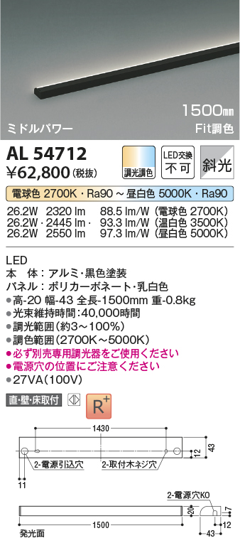●高-20 幅-43 全長-1500mm 重-0.8kg