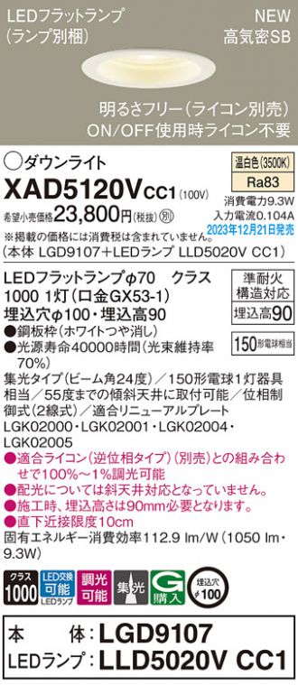 ◆天井埋込型、埋込穴φ100、浅型9H・高気密SB形・ビーム角24度・集光タイプ