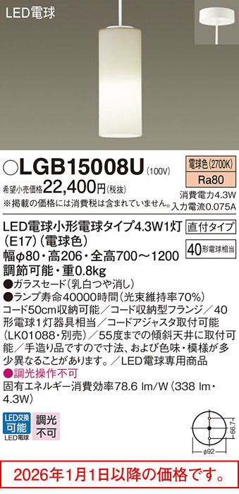 ◆器具光束:338 lm ◆電圧:100 V ◆消費電力:4.3 W ◆消費効率:78.6 lm/W