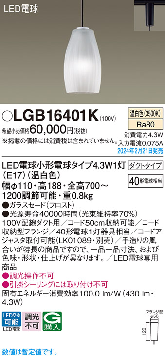 ◆器具光束:430 lm ◆電圧:100 V ◆消費電力:4.3 W ◆消費効率:100 lm/W