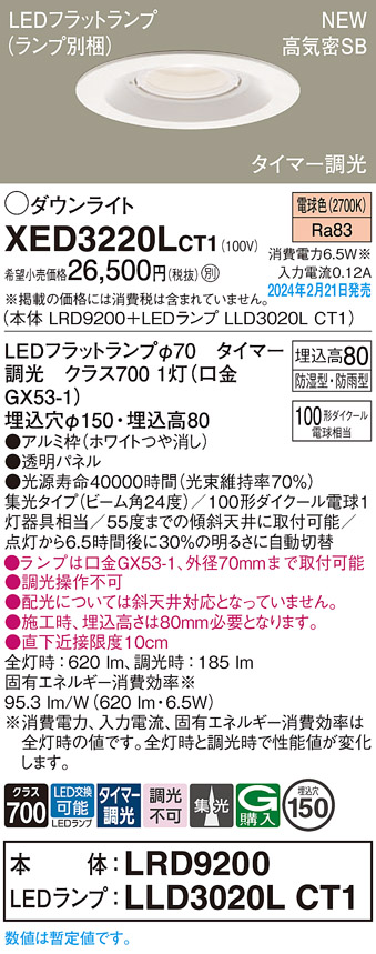 ◆器具光束:620 lm ◆電圧:100 V ◆消費電力:6.5 W ◆消費効率:95.3 lm/W