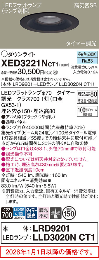 天井埋込型 LED(昼白色) 軒下用ダウンライト・エクステリアダウンライト 浅型8H・高気密SB形・ビーム角24度・集光タイプ LEDフラットランプ交換型・防湿型・防雨型/埋込穴φ150 パネル付型 110Vダイクール電球100形1灯器具相当(LRD9201+LLD3020NCT1)