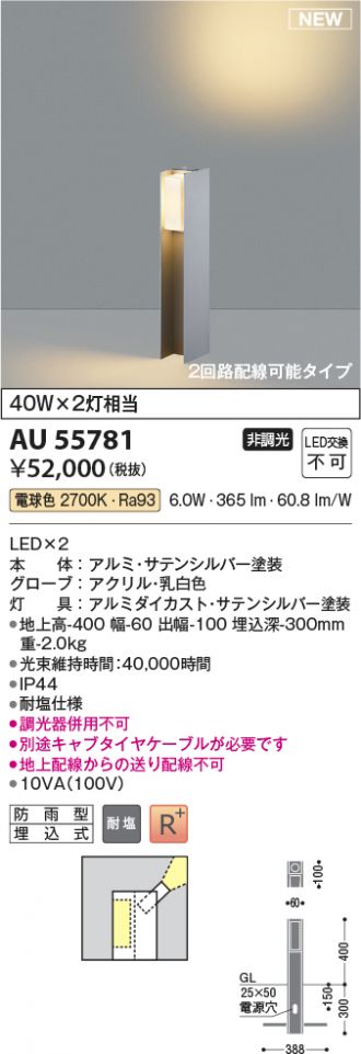 ●地上高-400 幅-60 出幅-100 埋込深-300mm 重-2.0kg