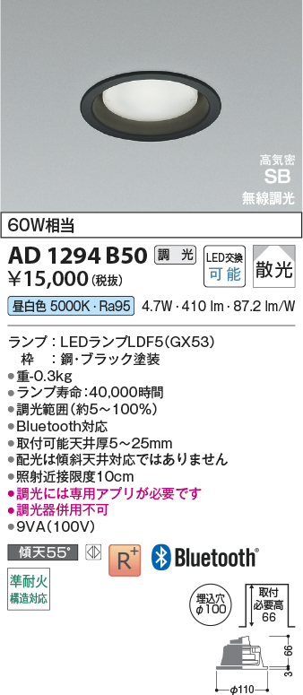 ●幅-φ110 出幅-3 埋込穴径-φ100 埋込高-66mm 重-0.3kg