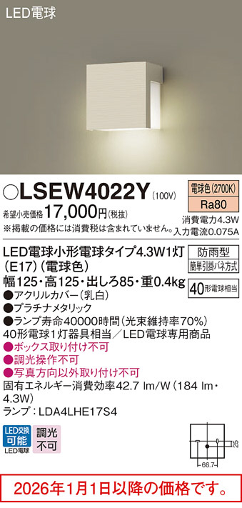 [機能/他] 発光ダイオード(LED)4.3W0.4kg幅125・高125・出しろ85アクリルカバー(乳白)・プラチナメタリック