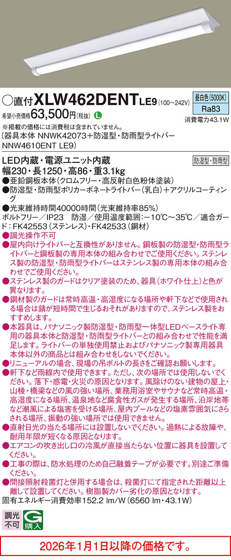 ◆注)本器具は、パナソニック製防湿型・防雨型一体型LEDベースライト専用の器具本体と防湿型・防雨型ライトバーとの組み合わせで性能を満足します。ライトバーの単独使用禁止およびパナソニック製専用器具本体以外の商品とは組み合わせをしないでください。