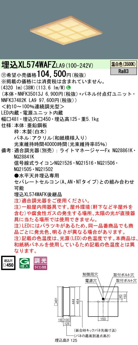 ◆注)記載の色温度は、光源(LED)の色温度です。本商品は、和紙柄パネルを使用しているため記載の色温度とは異なります。