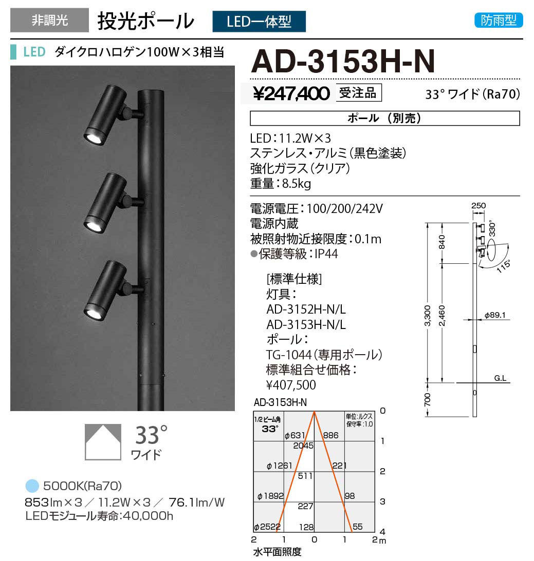 コメント:コンパクトスポットがポール灯に。ヘッドに「コンパクトスポット」を採用。同シリーズのオプションである各種フードやスプレッドレンズをそのまま使用でき、細やかな光を演出します。