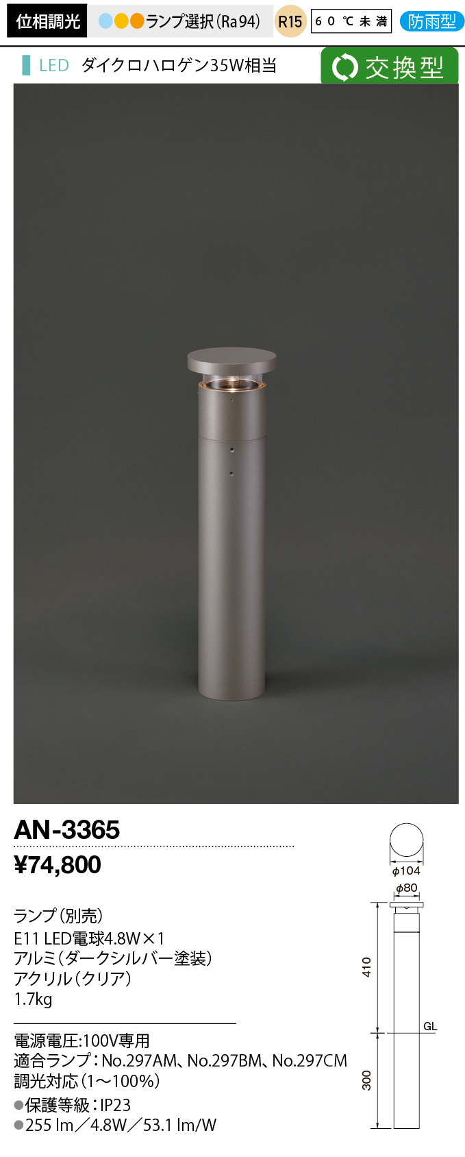 寸法:セード幅φ104mm・ポール幅φ80mm・高410mm・埋込深300mm