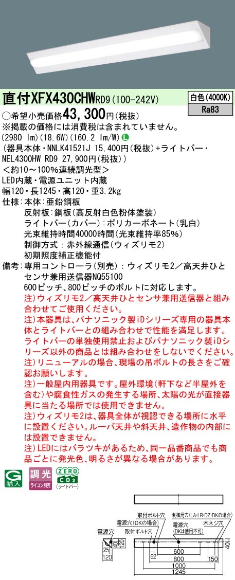 ◆注)本器具は、パナソニック製iDシリーズ専用の器具本体とライトバーとの組み合わせで性能を満足します。ライトバーの単独使用禁止およびパナソニック製iDシリーズ以外の商品とは組み合わせをしないでください。