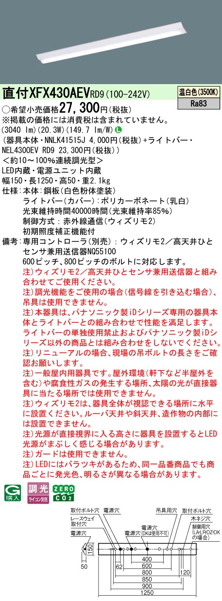 ◆注)本器具は、パナソニック製iDシリーズ専用の器具本体とライトバーとの組み合わせで性能を満足します。ライトバーの単独使用禁止およびパナソニック製iDシリーズ以外の商品とは組み合わせをしないでください。