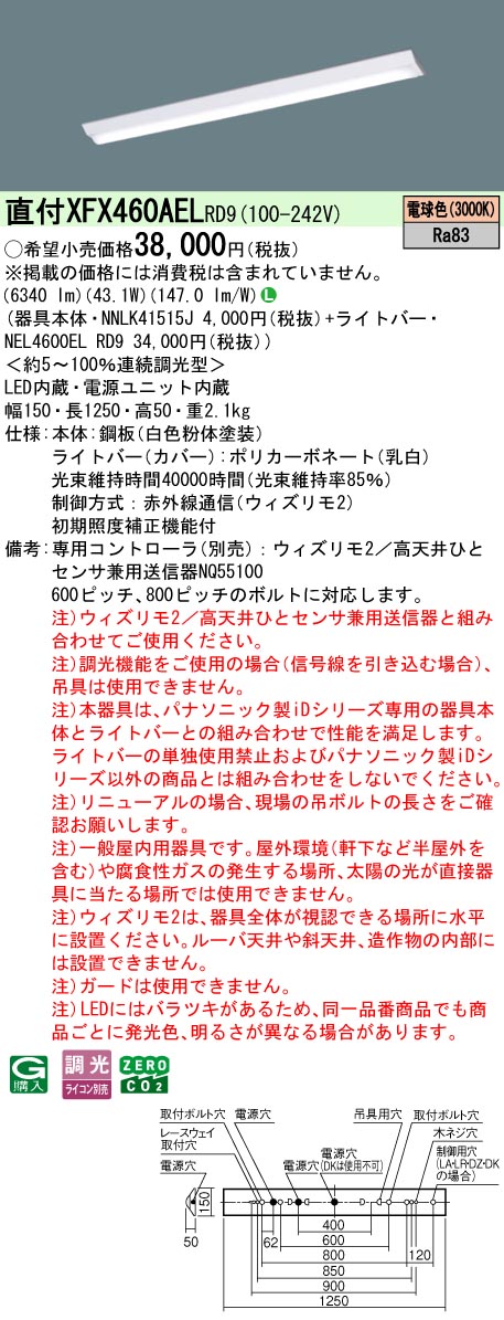 ◆注)本器具は、パナソニック製iDシリーズ専用の器具本体とライトバーとの組み合わせで性能を満足します。ライトバーの単独使用禁止およびパナソニック製iDシリーズ以外の商品とは組み合わせをしないでください。