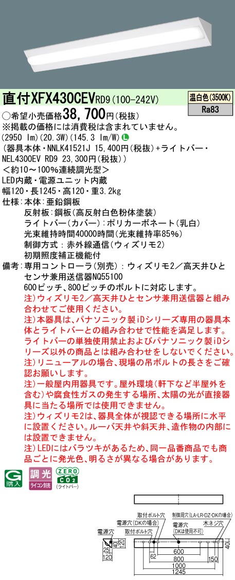 ◆注)本器具は、パナソニック製iDシリーズ専用の器具本体とライトバーとの組み合わせで性能を満足します。ライトバーの単独使用禁止およびパナソニック製iDシリーズ以外の商品とは組み合わせをしないでください。